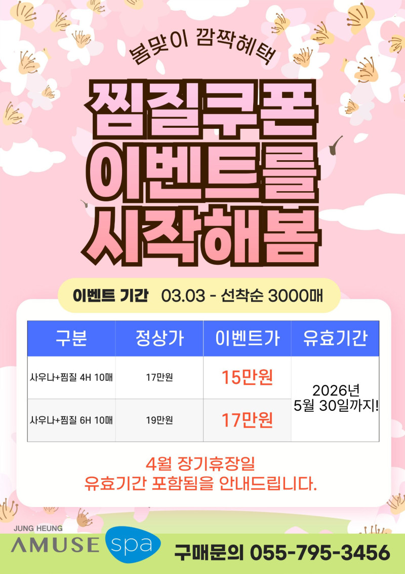 봄맞이 깜짝혜택! 찜질쿠폰 할인이벤트