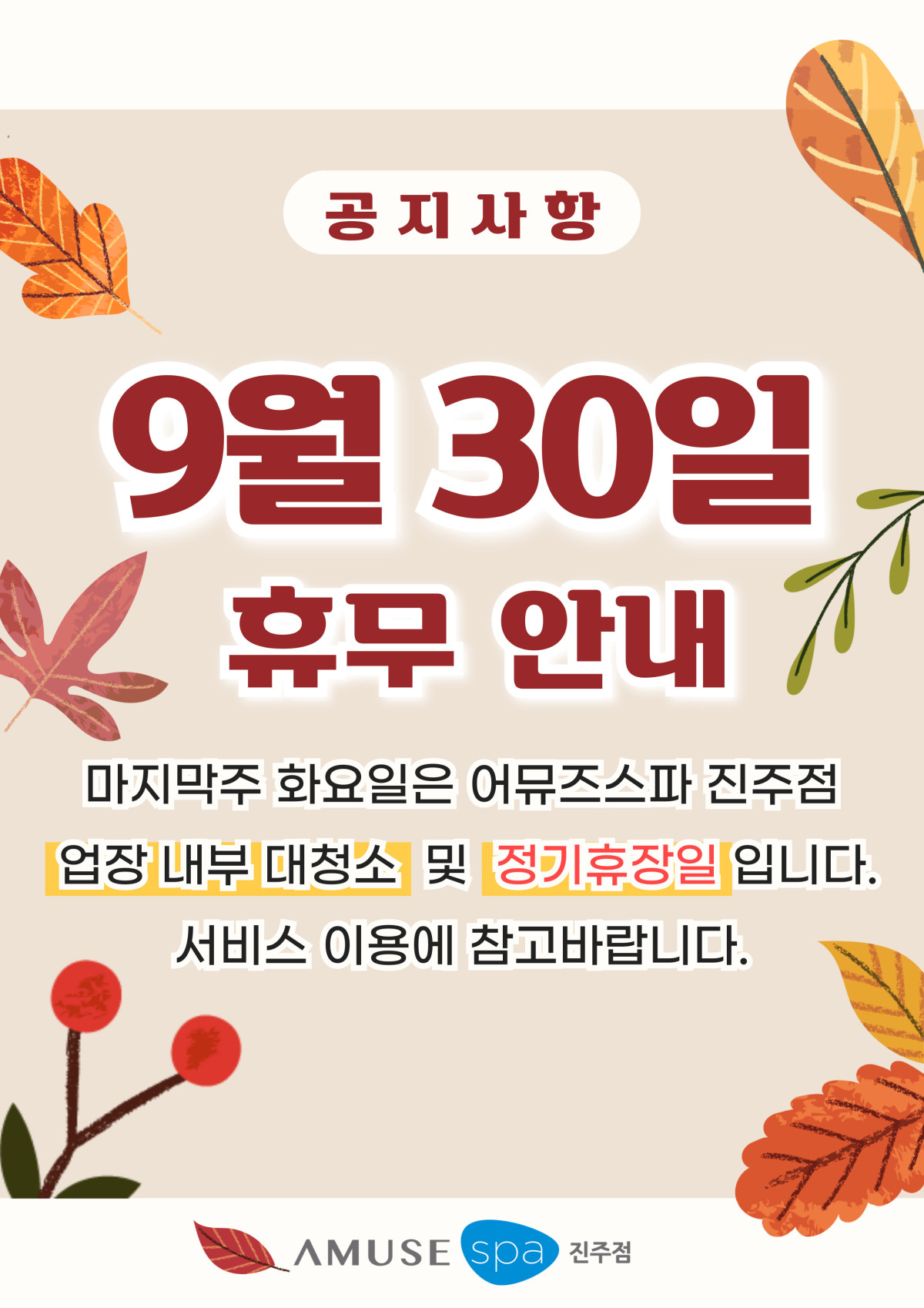 ★어뮤즈스파진주점 25년 9월 30일 정기휴장일 안내★