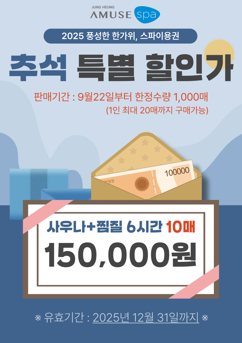 2025 풍성한 한가위, 어뮤즈스파 이용권! 추석특별 할인가 한정판매 이벤트