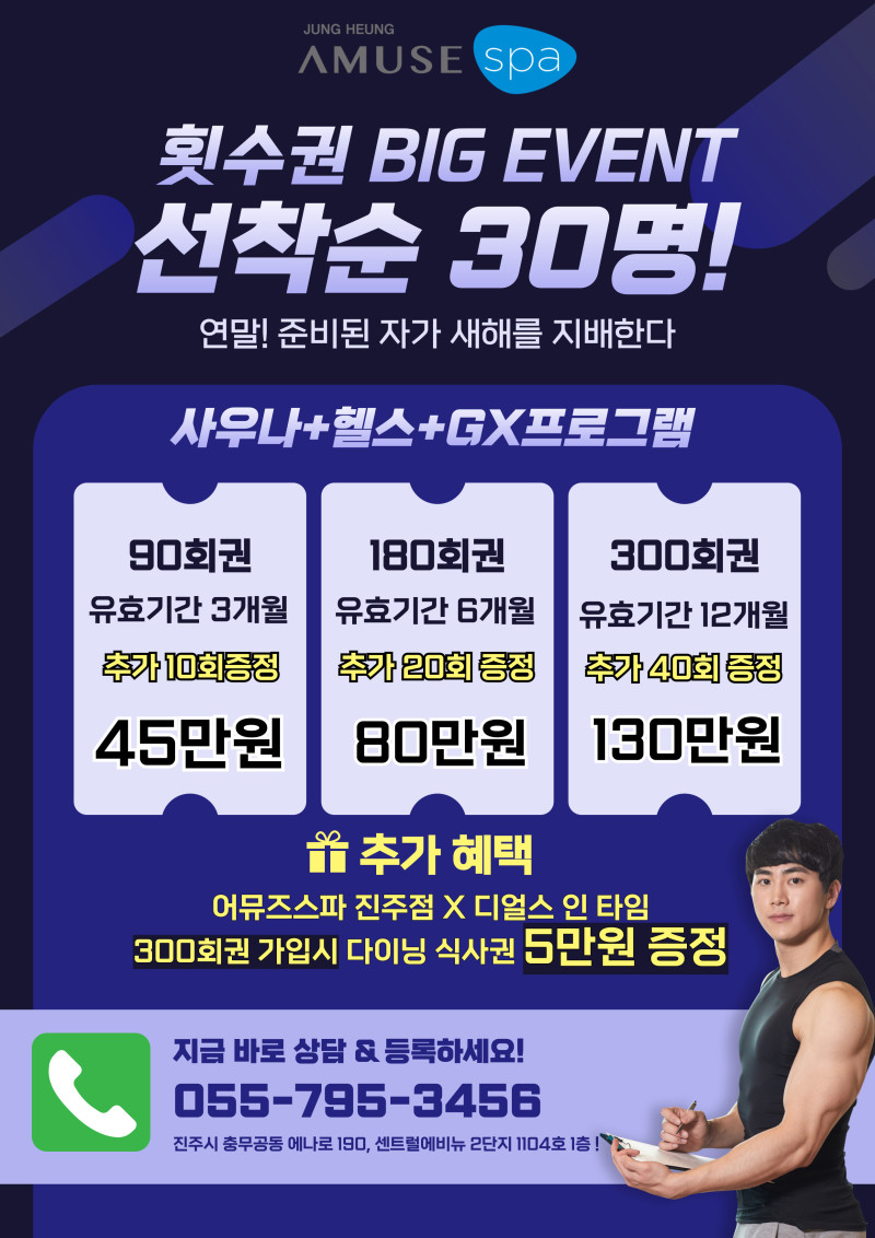 - 내몸을 디자인하다! 조각만들기 프로그램! 어뮤즈스파&피트니스 12월이벤트/헬스자유이용권