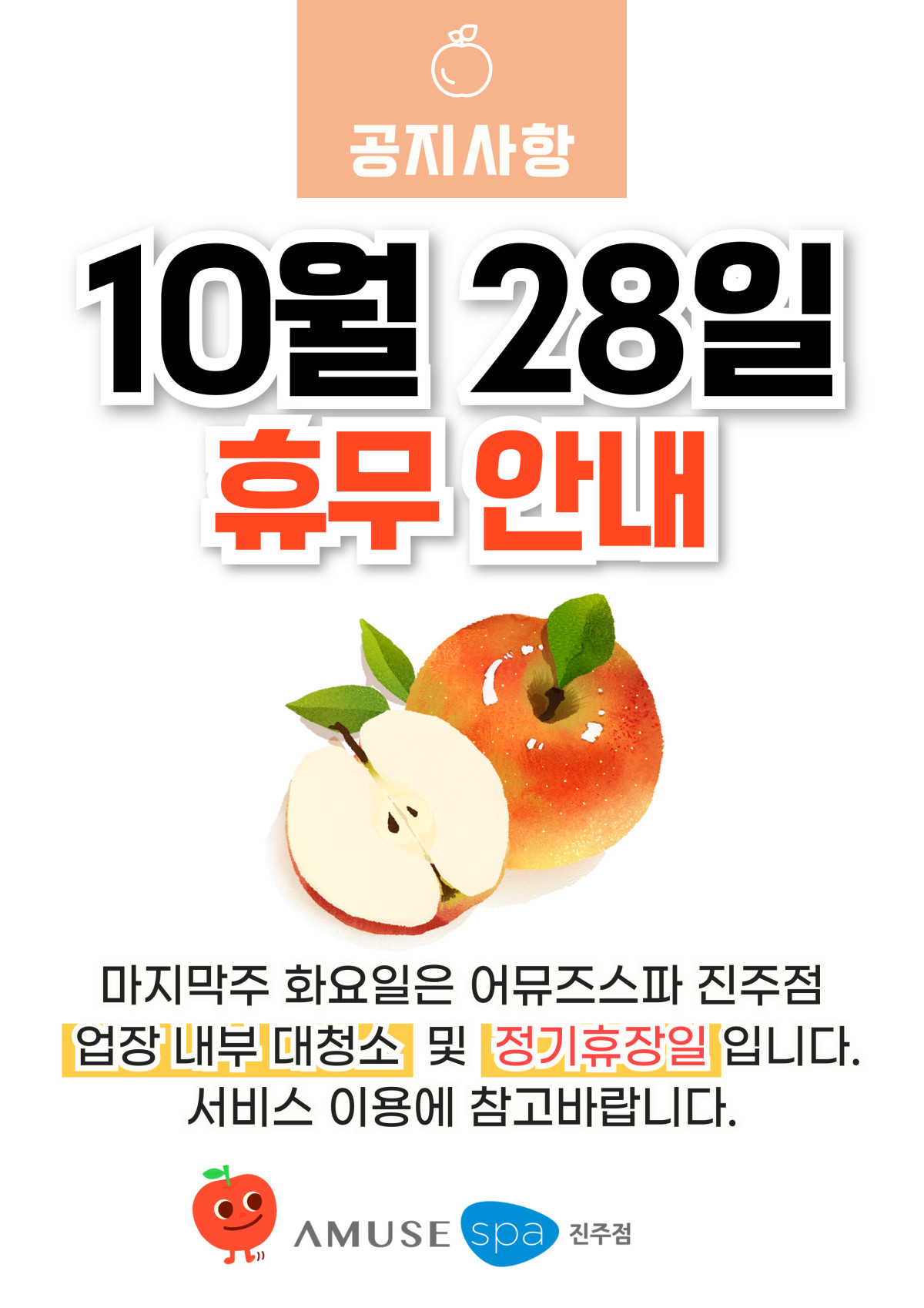 2025년 10월 28일(화) 어뮤즈스파 진주점 휴무 안내