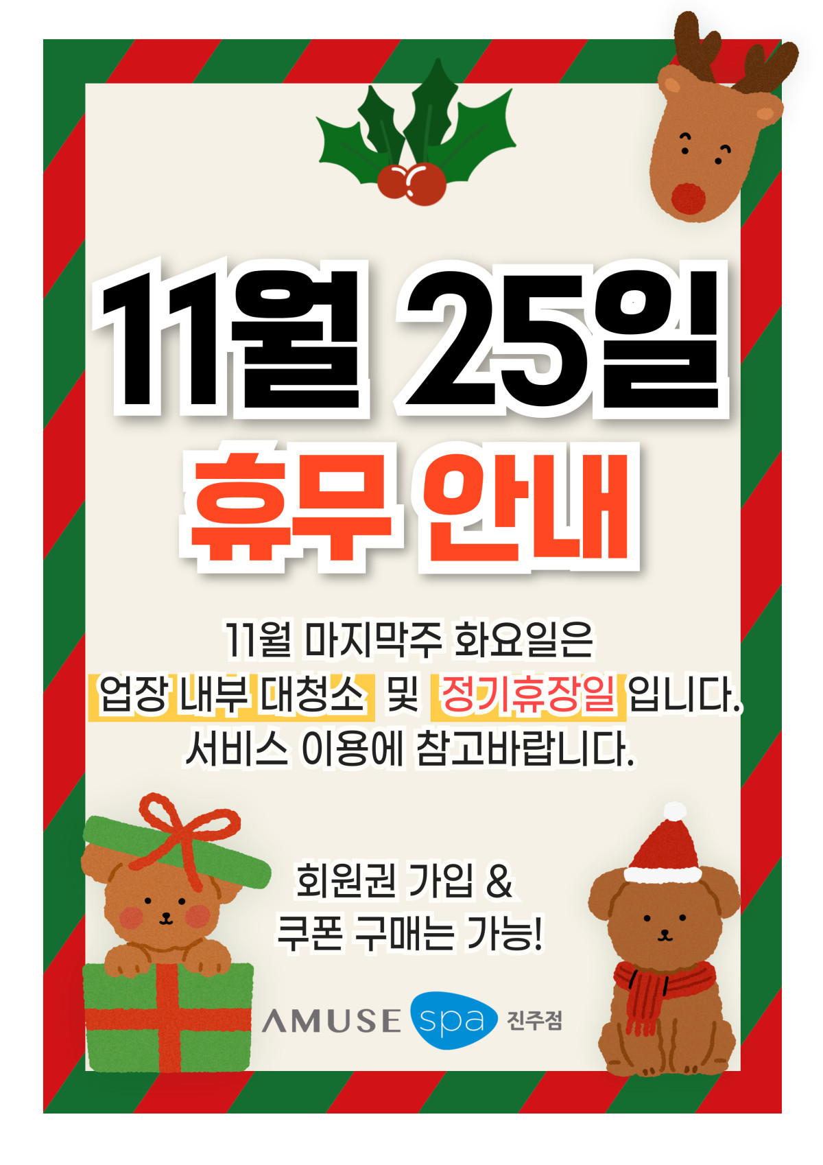 2025년 11월 25일(화) 어뮤즈스파 진주점 휴무 안내